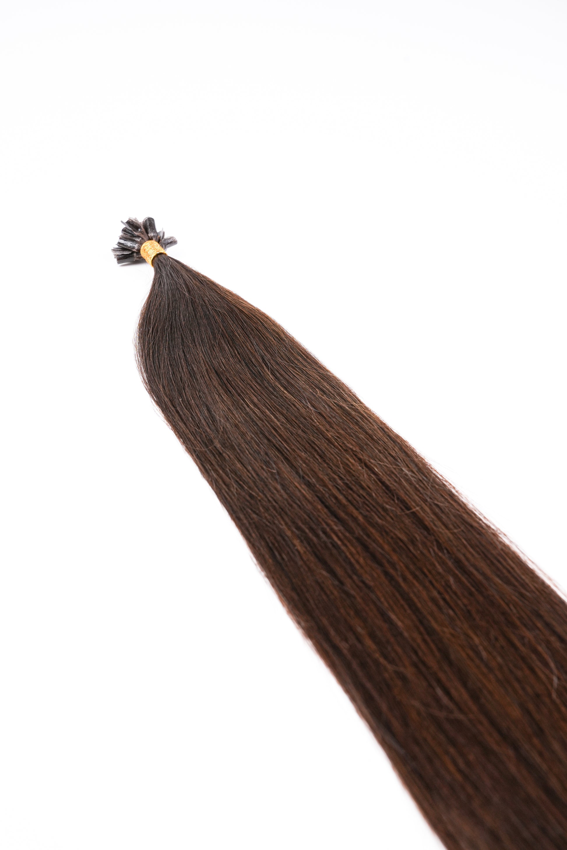 Unsere Bonding Extension in Dunkelbraun bringen sofort mehr Volumen und Länge in dein Haar und sorgen für einen eleganten, natürlichen Look.